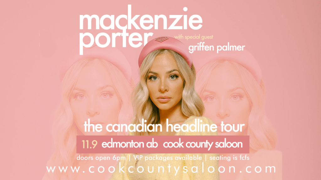 CISN Country 103.9 is excited to have Mackenzie Porter featuring Griffen Palmer at Cook County Saloon on November 9th, 2023!