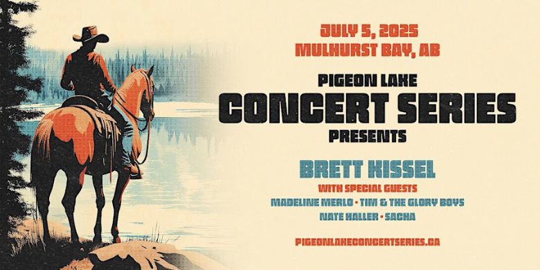 CISN Country 103.9 is EXCITED to welcome Brett Kissel to the Pigeon Lake Concert Series with special guest Madeline Merlo, Tim & The Glory Boys, Nate Haller and Sacha!